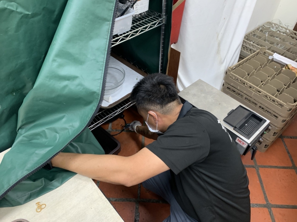 圖片10:針對室內捕獲老鼠之陷阱進行殺菌與更新。